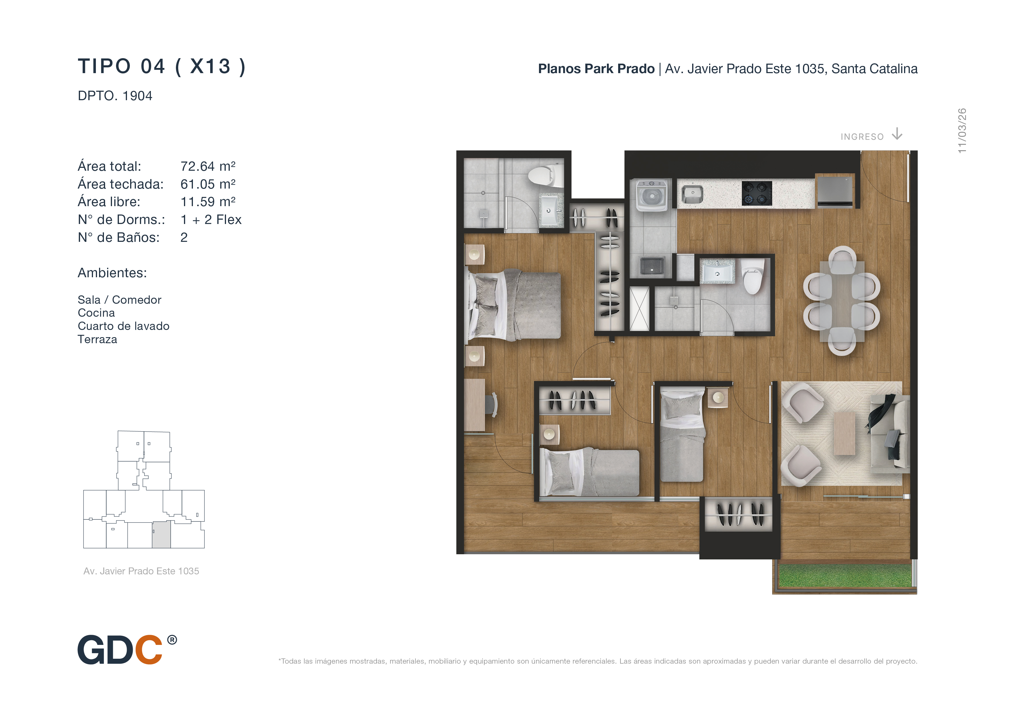 1, 2 y 3 dorm.Metraje